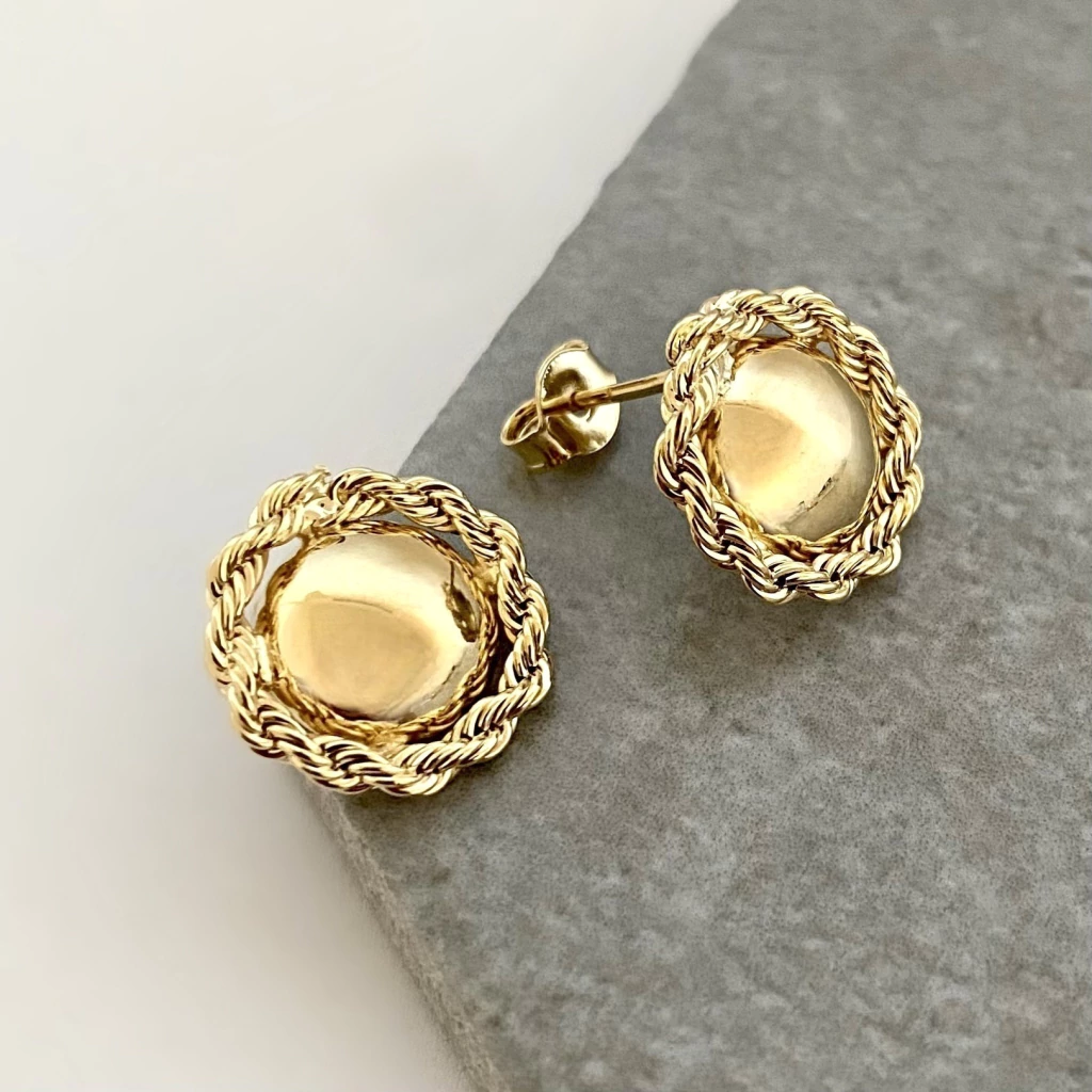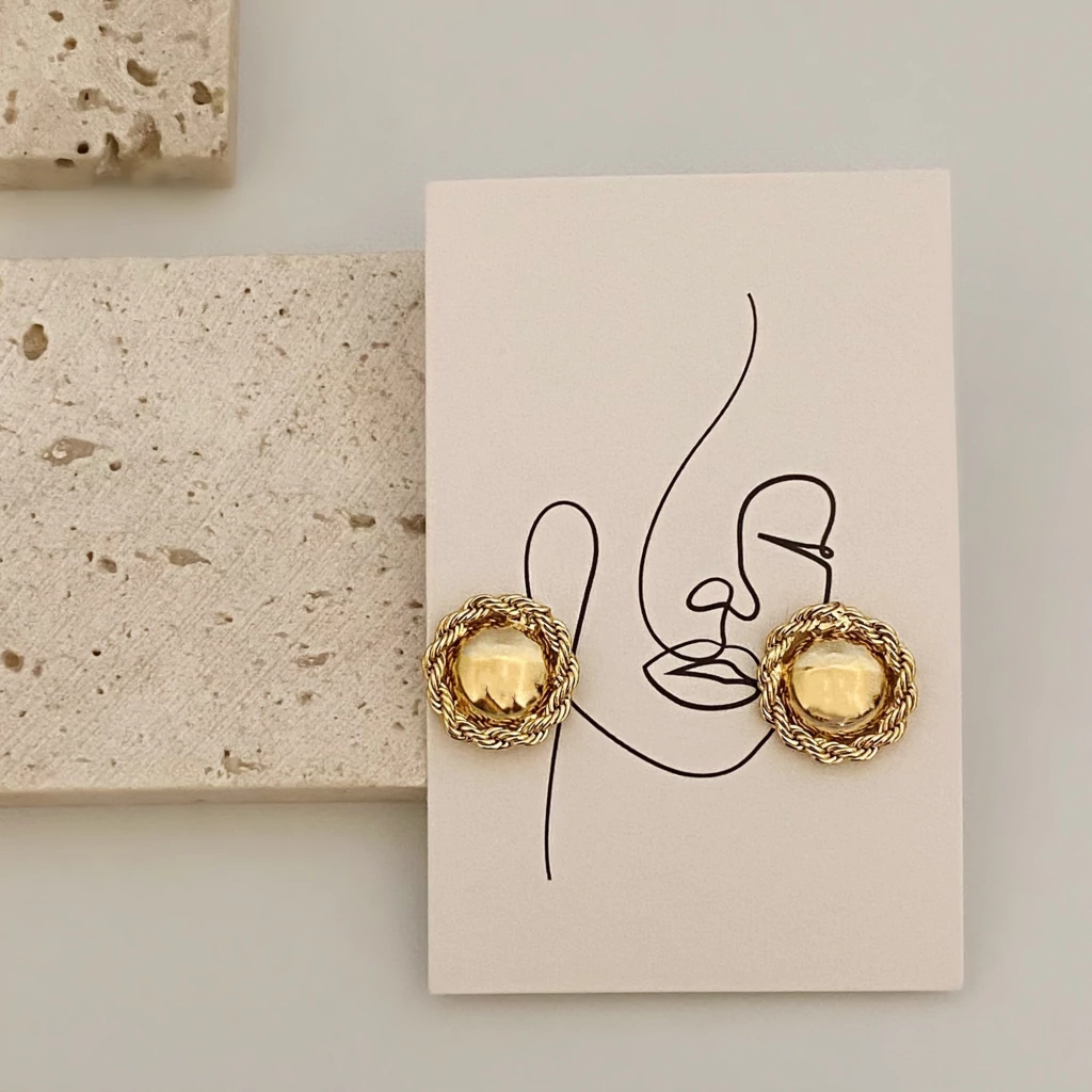 Com design clássico e toque retrô, este brinco combina o brilho do banho em ouro 18k com uma borda trançada que valoriza o formato redondo e acrescenta textura e elegância à peça. Seu centro polido reflete a luz de forma sutil, trazendo sofisticação e charme atemporal. Possui acabamento hipoalergênico, livre de níquel e com verniz protect que garante durabilidade e brilho intenso. Um acessório feminino ideal para quem aprecia o estilo vintage com um toque moderno.