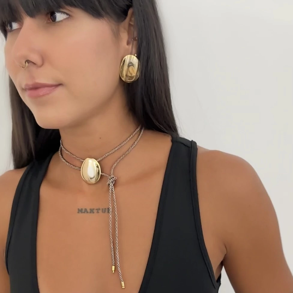Com design moderno e toque artesanal, este colar combina cordão em tom neutro com pingente orgânico banhado a ouro 18k, criando um equilíbrio perfeito entre sofisticação e casualidade. A semijoia possui acabamento hipoalergênico, livre de níquel e com verniz protect que garante brilho e durabilidade. Ideal para compor produções elegantes com um toque contemporâneo, é o acessório que traduz estilo e personalidade.